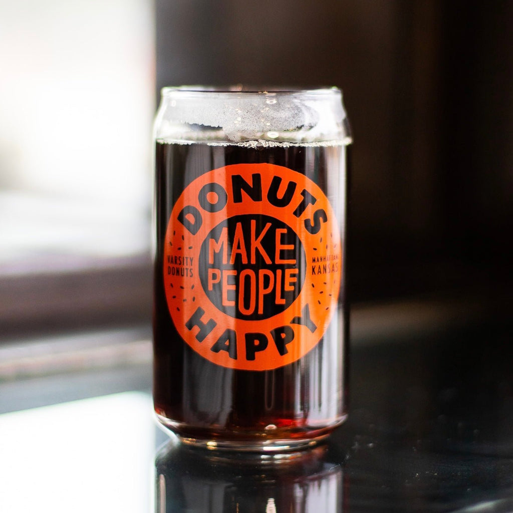 Donuts Make People Happy Orange Can Glass - is backordered and will ship as soon as it is back in stock.
