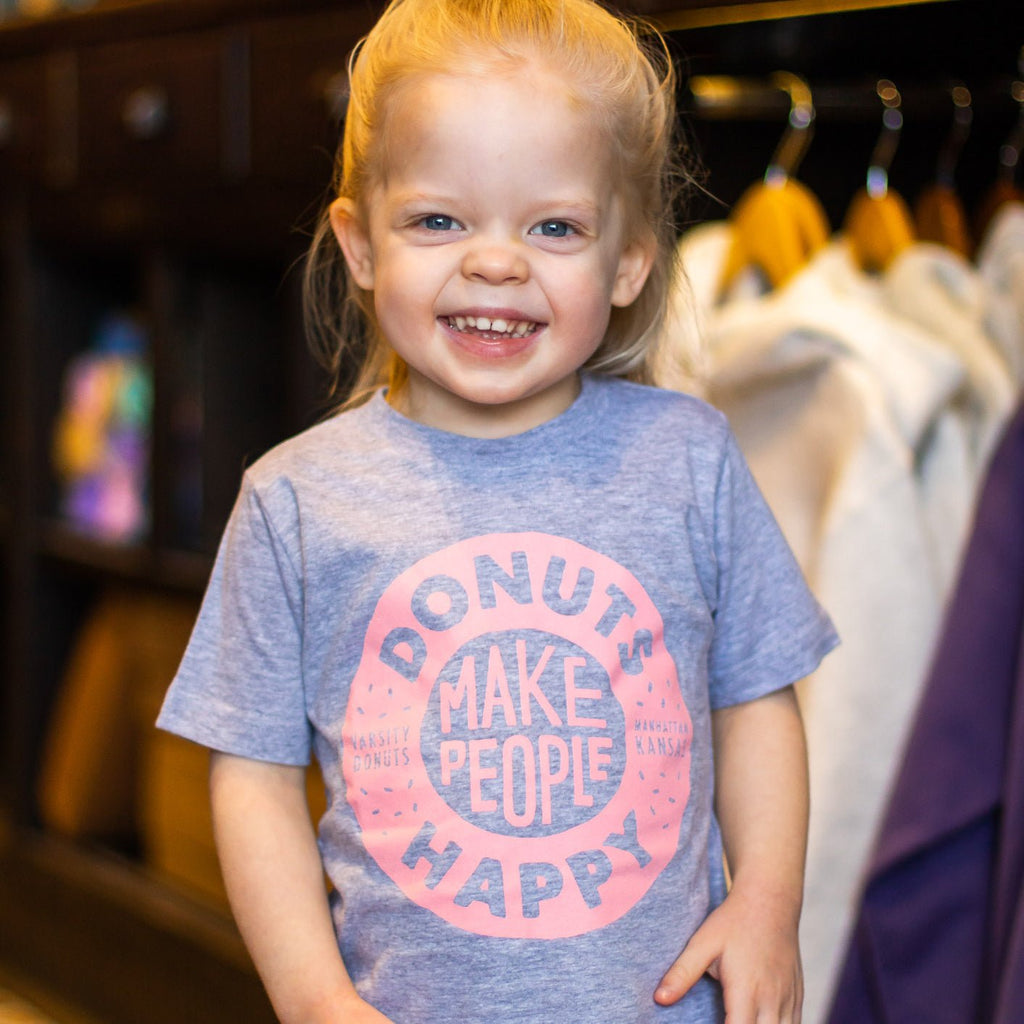 Donuts Make People Happy Grey/Pink Toddler Tee - is backordered and will ship as soon as it is back in stock.