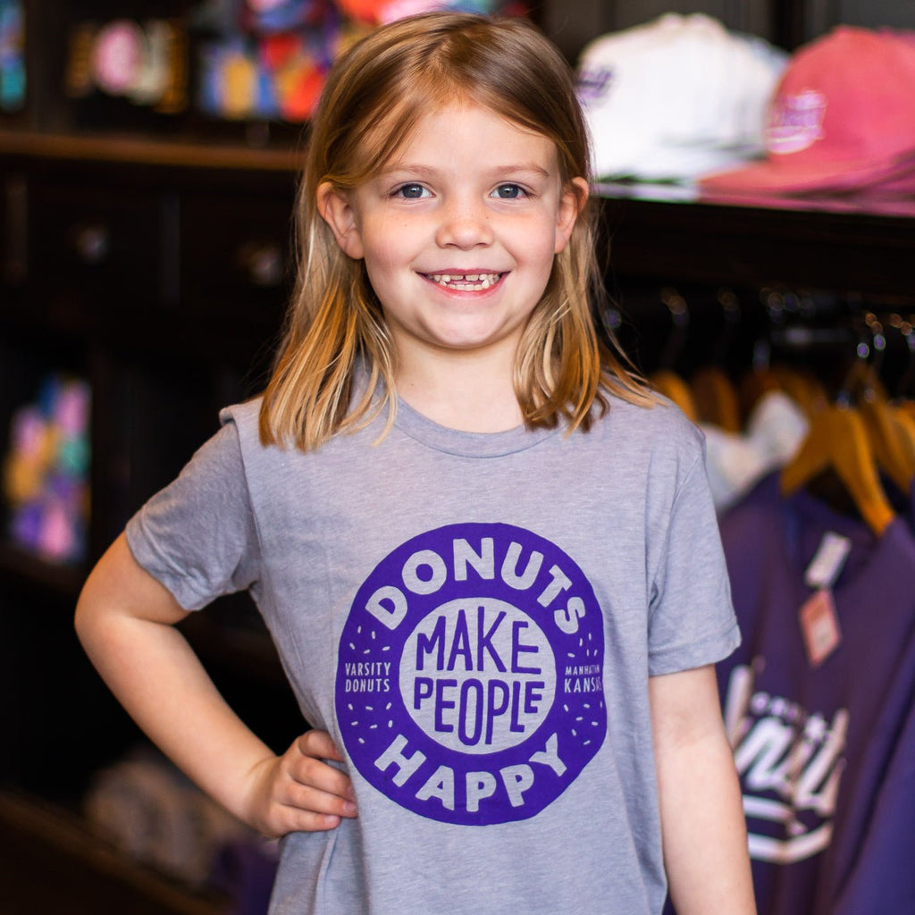 Donuts Make People Happy Grey/Purple Toddler Tee - is backordered and will ship as soon as it is back in stock.