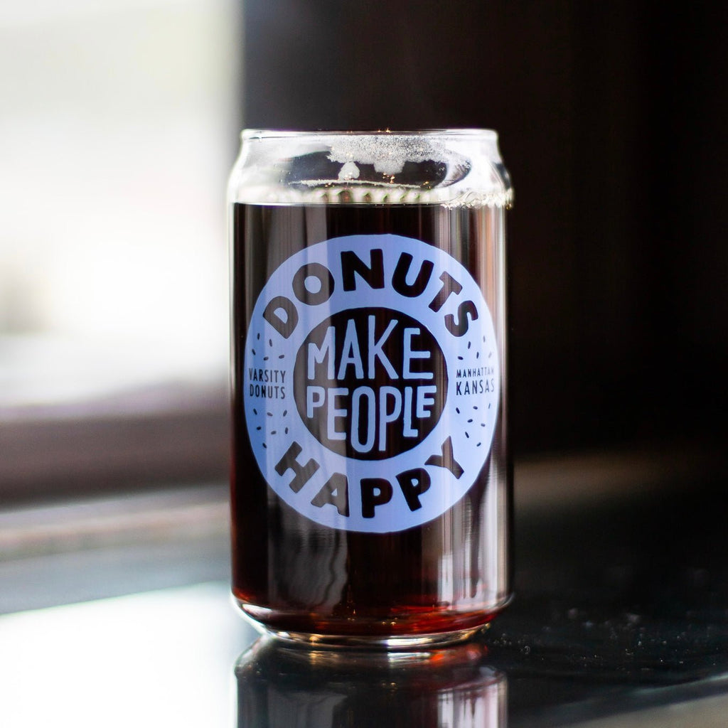 Donuts Make People Happy Blue Can Glass - is backordered and will ship as soon as it is back in stock.