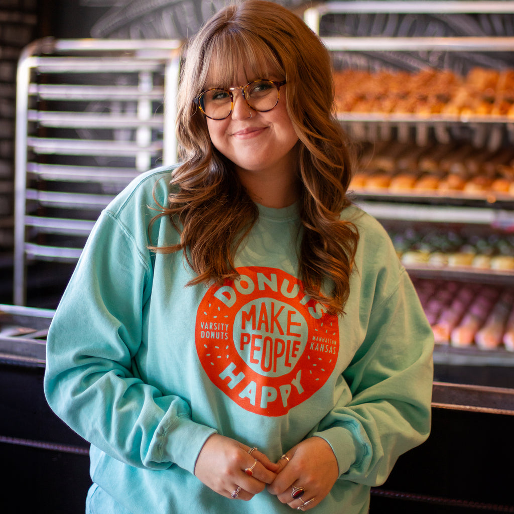 Donuts Make People Happy Chalky Mint Sweatshirt - is backordered and will ship as soon as it is back in stock.